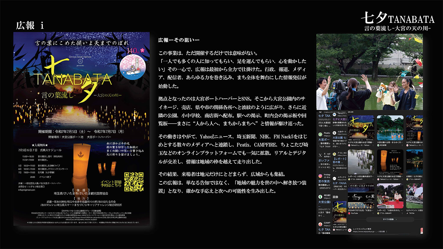 2023年7月7日、8日に開催された「七夕Night+」。水辺再生をテーマに様々な企画が提供され、来場者数1万人を超えるイベントとなりました。賑ノ杜としては主に水上神事・キャンドルナイトの二企画を実行しました。
