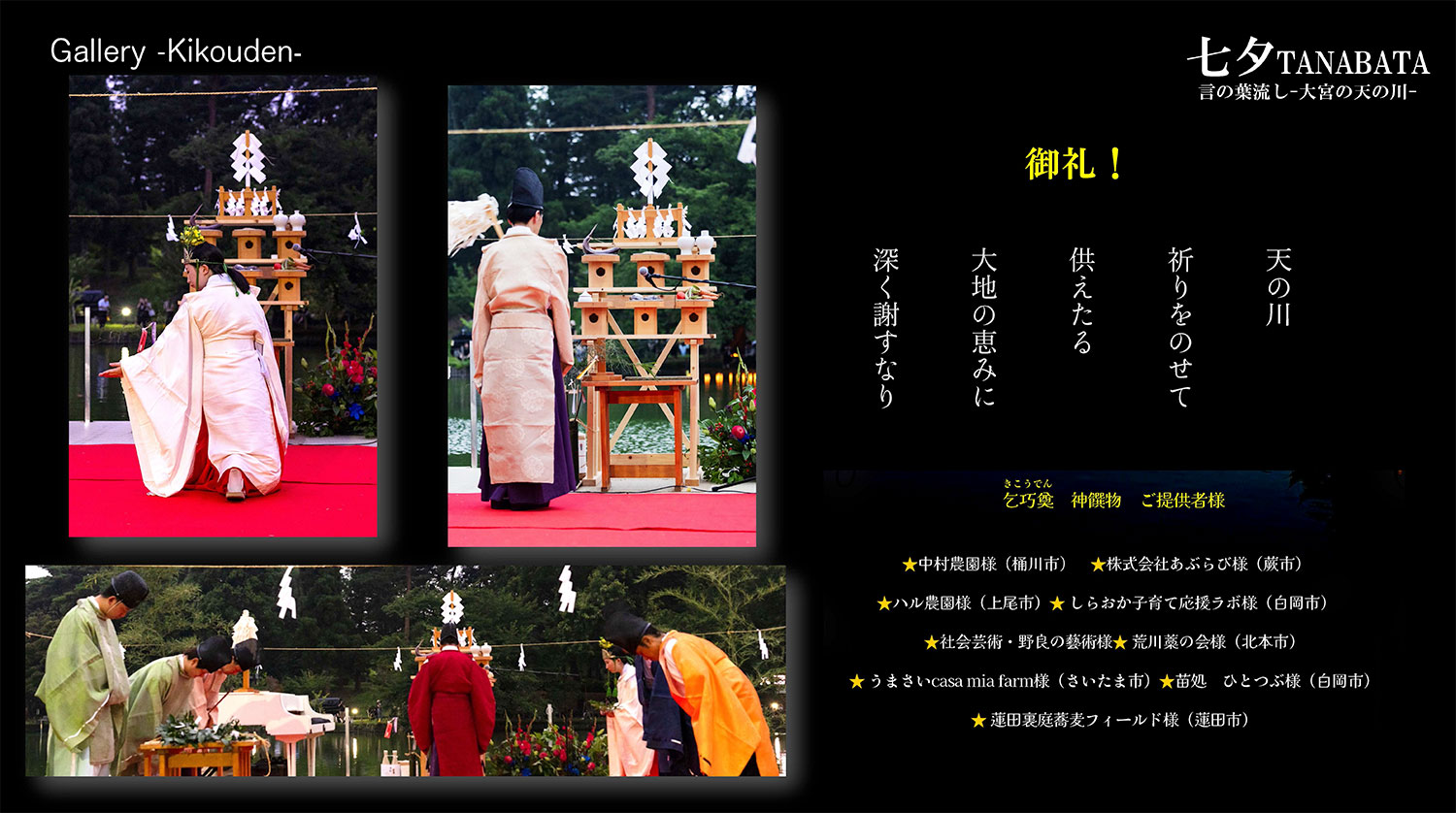 ご祈祷に使用された供物は、農家の皆様の多大なるご協力によって地元作物で揃えられ、祭壇上に氷川神社を通じた地域のつながりを再現することができました。皆様のお力添えによりこのような素晴らしい場面がつくられたことを心より感謝申し上げます。